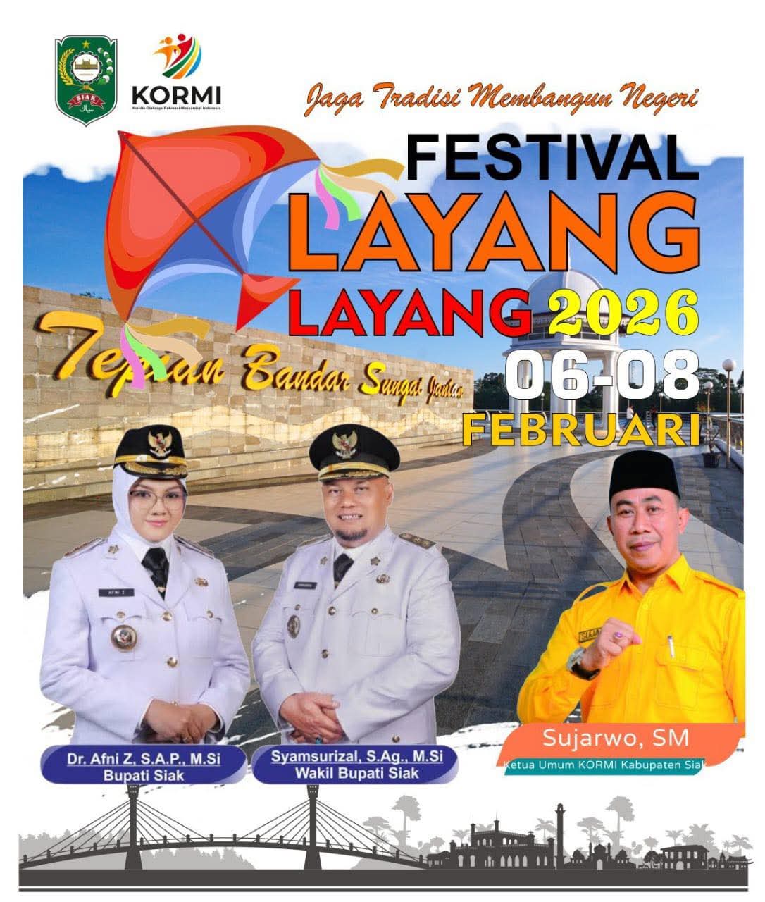 “Ayo ikuti Festival Layang-Layang Kabupaten Siak 2026 dan ramaikan langit Siak dengan budaya Melayu!” ajak Sujarwo.
