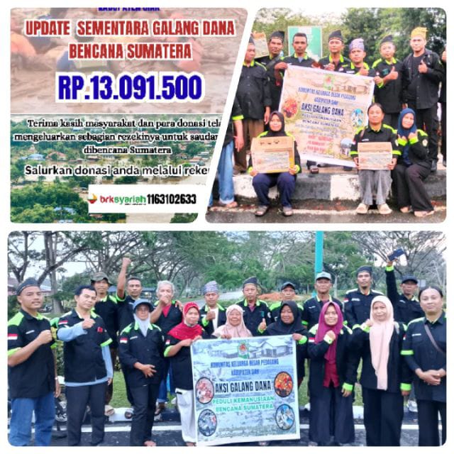 Bahana pos ( Siak ) – Komunitas Keluarga Besar Pedagang Kabupaten Siak terus menggalang dana untuk korban bencana Sumatera, yang meliputi Aceh, Sumatera Utara, dan Sumatera Barat. Kegiatan ini merupakan bentuk kepedulian dan solidaritas masyarakat Siak terhadap saudara – saudara yang terdampak bencana, Jumat (5/12/2025).