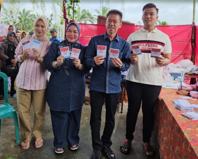 Bahana Pos  – Bupati Rokan Hilir (Rohil) Afrizal Sintong yang merupakan Calon Incumben dengan nomor urut 01 pada Pemilihan Kepala Daerah (Pilkada) Rohil Tahun 2024 memberikan hak suaranya di TPS 02 Sintong Bakti, Rabu (27/11/2024) Jalan Putri Hijau, Kepenghuluan Sintong Bakti, Kecamatan Tanah Putih, Rohil, Provinsi Riau. Sebelum memberikan hak suaranya pada Pilkada serentak tahun 2024, rombongan Bupati Rohil Afrizal Sintong berserta keluarga bertolak dari Mess Pemda Jalan Perwira, Bagansiapiapi pada pukul 09:45 WIB dan tiba di kediamannya di Kepenghuluan Sintong Bakti pada pukul 11:05. Setelah Istirahat sejenak Bupati Rohil Afrizal Sintong didampingi Ketua TP PKK Rohil Ny. Sanimar, Anggota DPRD Riau Nalladia Ayu Rokan dan keluarga lainnya menuju ke TPS 02 Sintong Bakti yang tidak jauh dari Kediaman Bupati Rohil Afrizal Sintong. Tepat pada pukul 11:15 WIB Bupati Afrizal Sintong bersama keluarga tiba di TPS 02 Sintong Bakti untuk memberikan hak suaranya di TPS tersebut. Setibanya di TPS Afrizal Sintong diikuti Istri dan anaknya langsung mendaftarkan C undangan kepada petugas KPPS 02 Sintong Bakti untuk mendapatkan kertas suara. Setelah mendapatkan kertas suara, Bupati dan keluarga diarahkan petugas KPPS menuju bilik suara masing-masing untuk melakukan pencoblosan hingga pada proses memasukkan kertas suara di kotak suara serta mencelupkan jari pada tinta sebagai tanda bahwa Bupati Afrizal Sintong beserta keluarga telah memberikan hak suaranya pada Pilkada serentak tahun 2024. Selesai memberikan hak suaranyanya, Bupati Afrizal Sintong beserta keluarga berpose di depan TPS 02 Sintong Bakti dengan menunjukan tanda tinta pada jarinya. “Alhamdulillah hari ini kami sekeluarga telah memberikan hak suara pada Pilkada serentak tahun 2024 ini di TPS 02 Sintong Bakti. Dan dapat kita saksikan tadi masyarakat begitu antusias datang ke TPS untuk memberikan hak suaranya. Kita berharap partisipasi pemilih pada Pilkada Rohil ini tinggi. Atas nama Bupati Rohil kita mengajak seluruh masyarakat untuk beramai-ramai memberikan hak suaranya di TPS. Kita berharap proses pemungutan suara hingga penghitungan suara ini nantinya dapat berjalan aman, damai dan lancar,” jelasnya. Sementara itu, Ketua KPPS 02 Jalan Putri Hijau, Kepenghuluan Sintong Bakti, Kecamatan Tanah Putih, Febrico Rahman mengatakan bahwa jumlah DPT di TPS 02 berjumlah 482 termasuk di dalamnya terdapat nama Bupati Rohil Afrizal Sintong, Ibu Sanimar, Nalladia Ayu Rokan, Putafri Rokan dan keluarga lainnya. “Alhamdulillah pak Bupati Afrizal Sintong beserta keluarga tepat pada pukul 11:20 telah memberikan hak suaranya di TPS 02 Sintong Bakti. Untuk partisipasi pemilih di TPS 02 Sintong Bakti sampai menjelang tengah hari ini sudah mencapai 75 persen,” kata Febrico