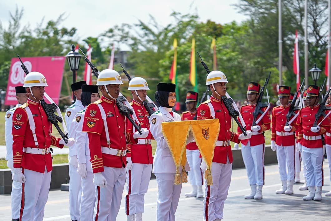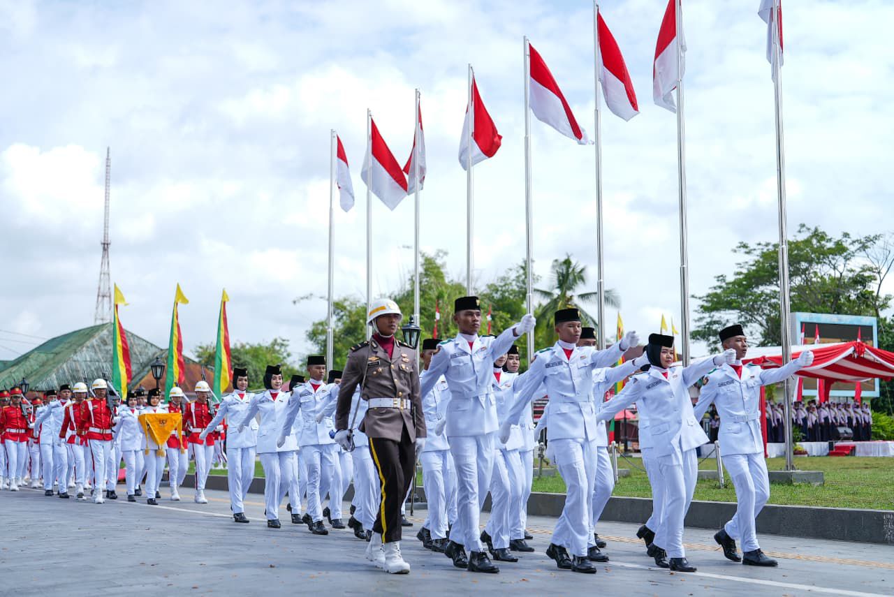 Mereka terdiri dari TNI dan pelajar terbaik dari SMA yang ada di kabupaten Siak. Hari Ulang Tahun (HUT) RI ke-80 mengambil tema “Bersatu Berdaulat Rakyat Sejahtera Indonesia maju” bertindak sebagai inspektur upacara, Bupati Siak, Afni Zulkifli, berlangsung di Lapangan Tugu, Depan Istana Siak, Minggu (17/8/2025).