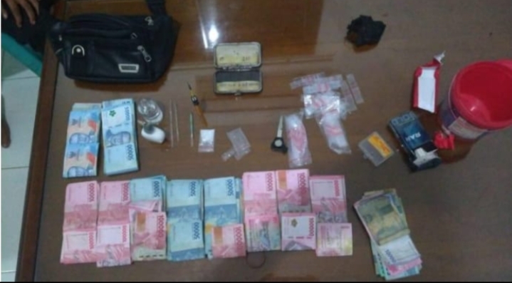 Barang bukti yang berhasil diamankan; satu kantong narkotika diduga jenis sabu – sabu seberat kurang lebih 1,12 gram.uang tunai Rp. 10.462.000 hasil penjualan.dua botol alat pengisap/bong.korek api dan alat pembakar.satu ember kecil . empat batang rokok merek ran . Plastik pembungkus sabu. satu kunci motor. satu tas pinggang.