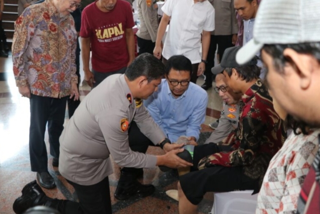 Poto :Wakapolda Polda Metro Jaya Brigjen Pol. Djati Wiyoto Abadhy menyerahkan bantuan