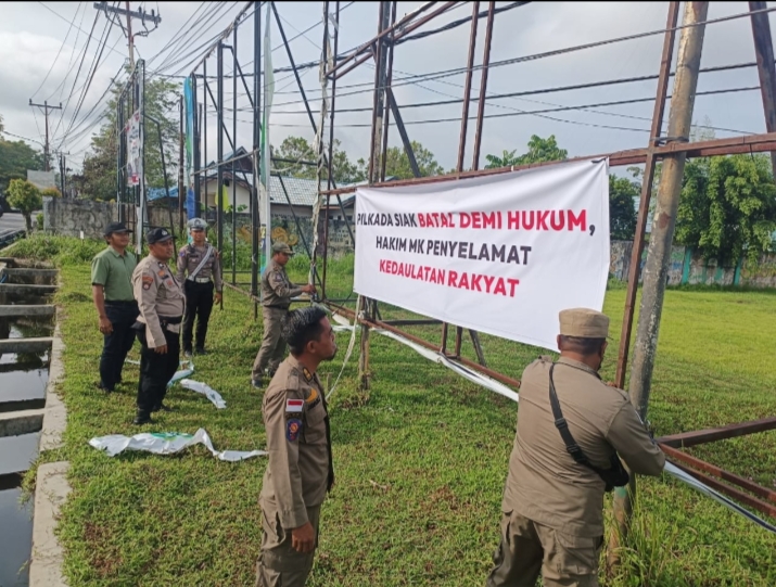 Beredar Berbagai Titik Spanduk Provokasi Terpasang. Dr. Afni : Jaga Ketenteraman Masyarakat Daerah, Hukum, Kabupaten Siak|17 Desember 2024oleh bahanapos Bahana Pos – Beredar spanduk bertulisan pilkada Siak batal demi hukum, hakim