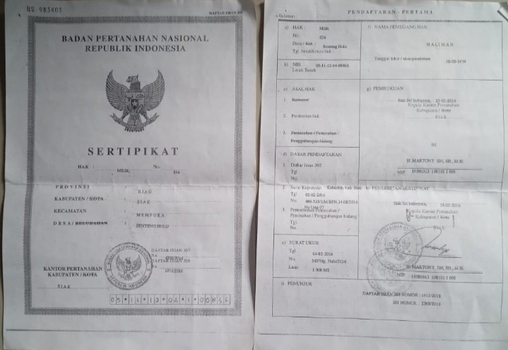 Bahana Pos (Mempura ) – Salah satu warga kampung benteng hulu telah kehilangan surat tanah asli atas nama Halimah nomor : 836 pada Jumat, 13 Desember 2024 sekitar pukul 15.00 WIB. Beralamat ; Jl.Perwira RT 003/ RW 001.dengan sepadan/ batas tanah sebagai berikut; Sebelah Utara berbatasan dengan Saudara Muhammad Amin, Sebelah Selatan berbatasan dengan Saudari Suryati, Sebelah timur berbatasan dengan Jl.Gang , Sebelah Barat berbatasan dengan saudara Hidayat Mangku , Talib, Juminem lokasi di desa Benteng Hulu kecamatan Mempura kabupaten Siak provinsi Riau Rabu (25/12/2024).