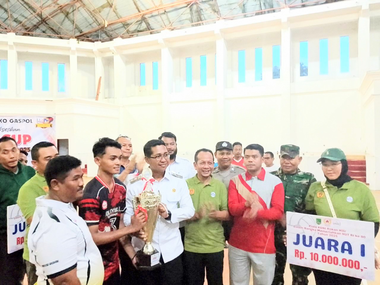 Bahana pos ( Rohil ) – Wakil Bupati Rokan Hilir, Jhony Charles, BBA, MBA, menghadiri penutupan final Turnamen Bola Voli KONI Cup 2025 di GOR Batu 6, Rabu sore (13/08/2025). Laga puncak mempertemukan tim TBS melawan PT. JATIM dan disaksikan ratusan penonton yang memenuhi arena dengan sorakan meriah.